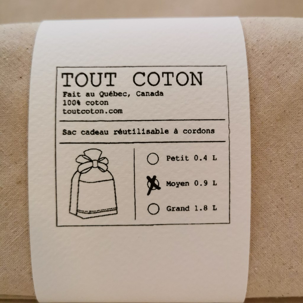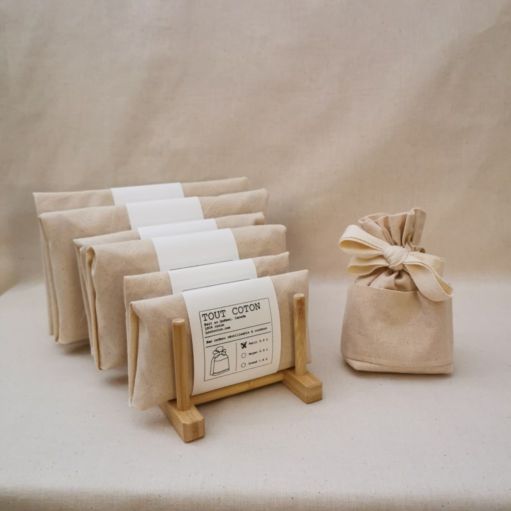 Le sac cadeau réutilisable à cordons de Tout Coton est une excellente alternative au sac jetable. Il ajoute de la valeur au cadeau donné.